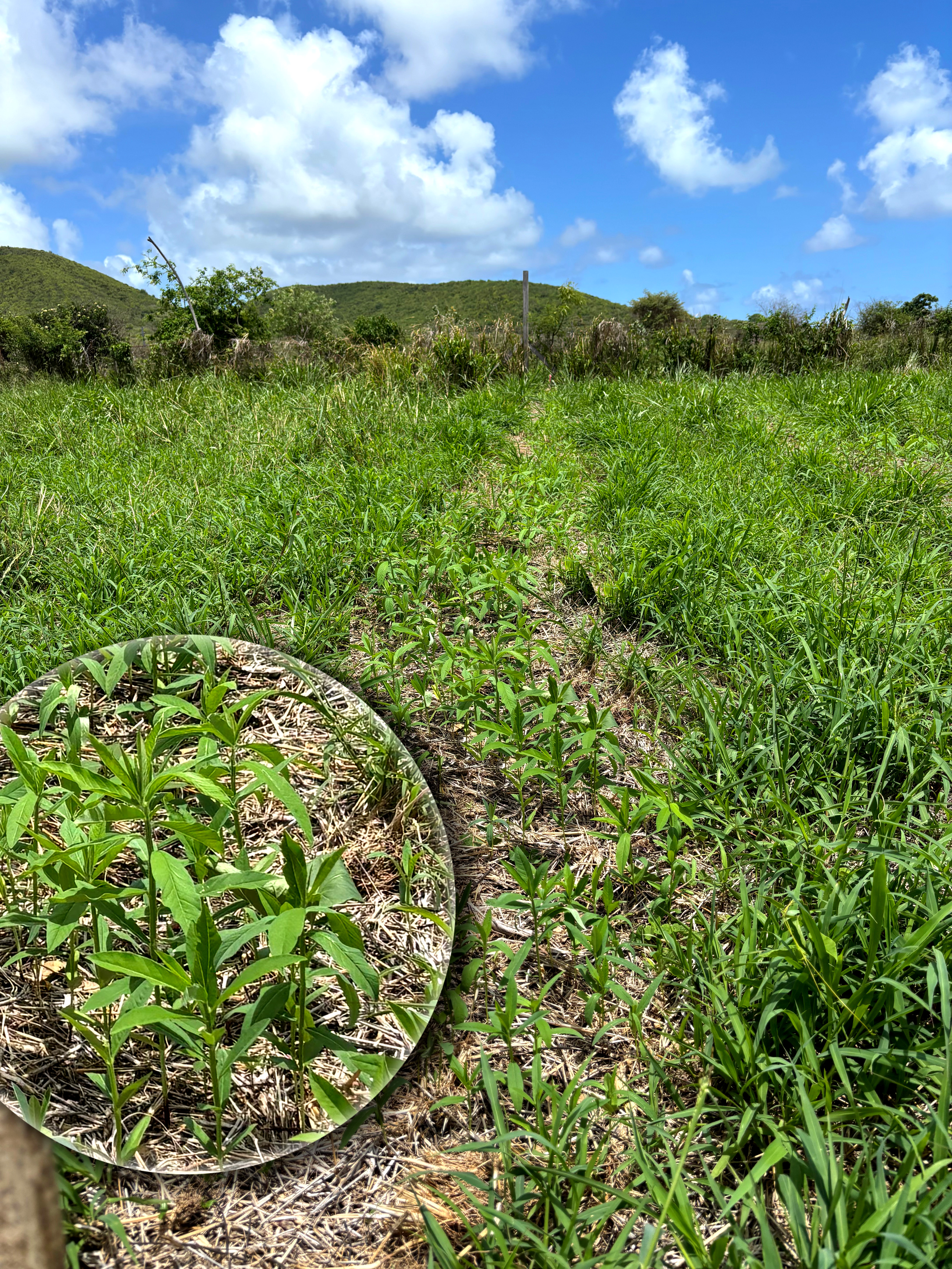 Sorghum (an old world grain) has been interplanted with sun hemp (sorry, not CBD hemp), sword bean and cow peas — they are almost ready to be harvested for our chickens.