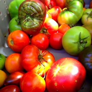 Sweet mix, spicy mix, arugula, big tomatoes, cherry tomatoes, radishes, onions, beets, broccoli and broccoli greens, Chinese cabbage, dandelion greens, Swiss chard, fennel, Italian basil, lemon basil, Thai basil, holy basil, ice cream, local honey!