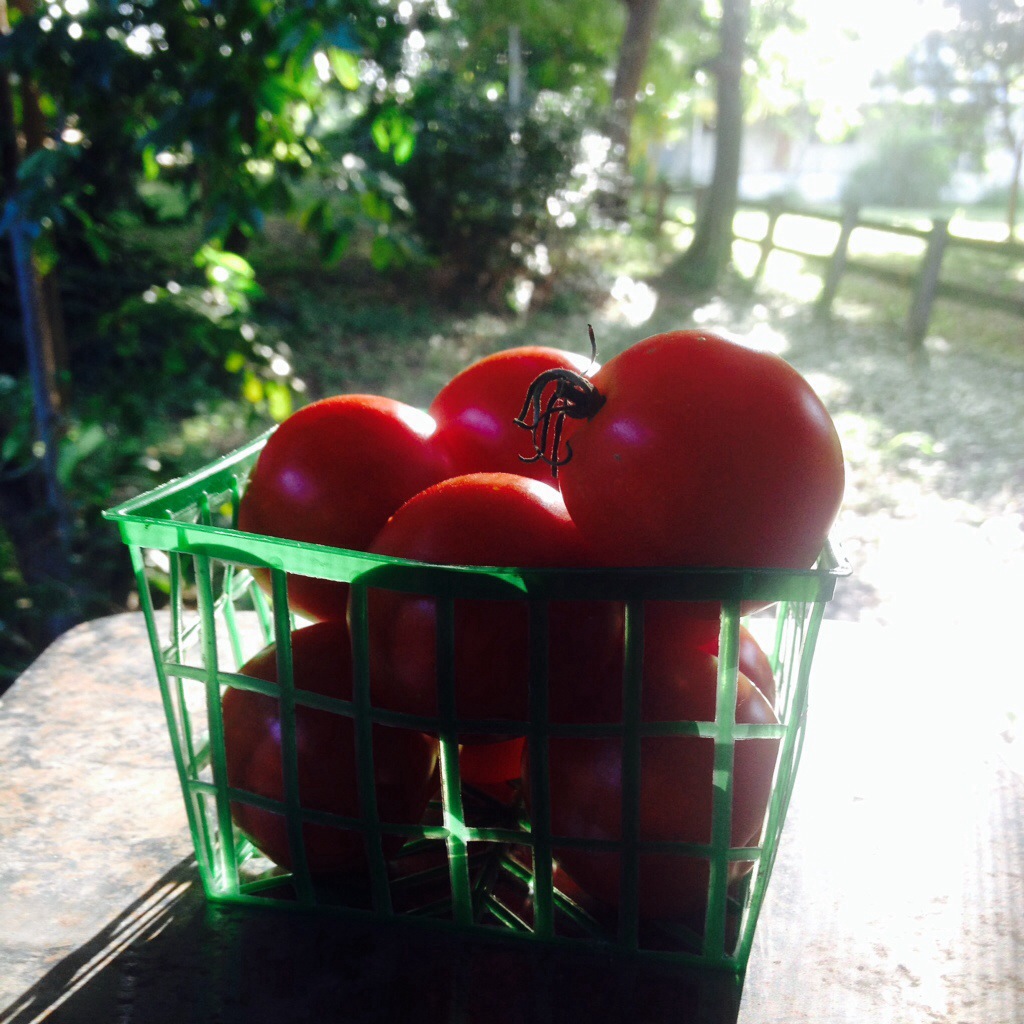 Farming — It’s a numbers game: Harvested for you this morning: five types of cherry tomatoes, five types of slicing tomatoes, at least five kinds of heirloom tomatoes, sweet salad mix containing roughly seven types of greens, spicy mix with eight kinds of lettuce and mescluns, baby arugula, microgreens (five types of seedlings), lettuce heads, two types of cucumbers, singular bodhi beans, fresh ginger root, four sweet and four chili pepper types, eggplant, kale, radishes, at least four types of onions, carrots in three colors, Kang Kon, collards, lemongrass, recao, sage, mint, thyme, dill, flat parsley, cilantro, italian basil, holy basil, dandelion greens, zinnia flowers, three kinds of figs, assorted native trees for sale, pineapple slips, at least five flavors of ice cream by I-Sha, and bread and bagels by Tess.