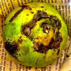 Black sapote fruit (chocolate pudding fruit, Diospyros nigra) is an unusual, seldom exported, island treat. A cousin of the persimmon fruit, they can be eaten sweet or savory out of hand, sliced or pureéd, or used in a multitude of places where you would want a rich fruit pulp.