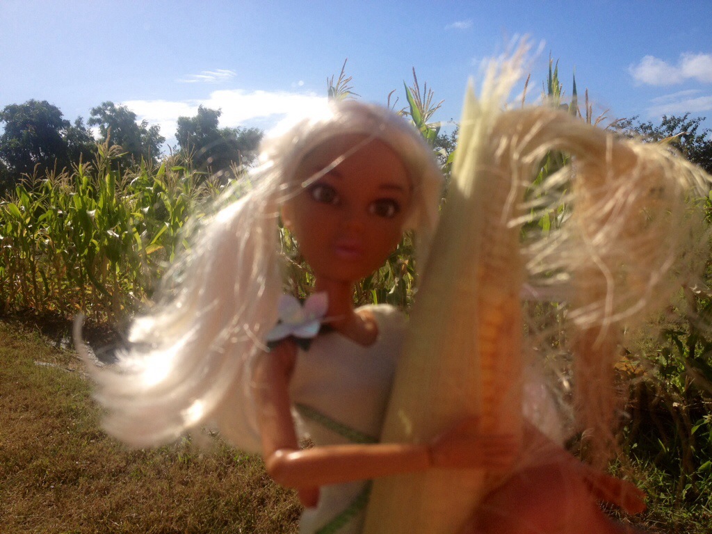 Our ‘look’ this morning is inspired by the long golden silky flowing hair of the sweet corn. Here is your morning vegetable chant: read it out loud and practice your power walk!
