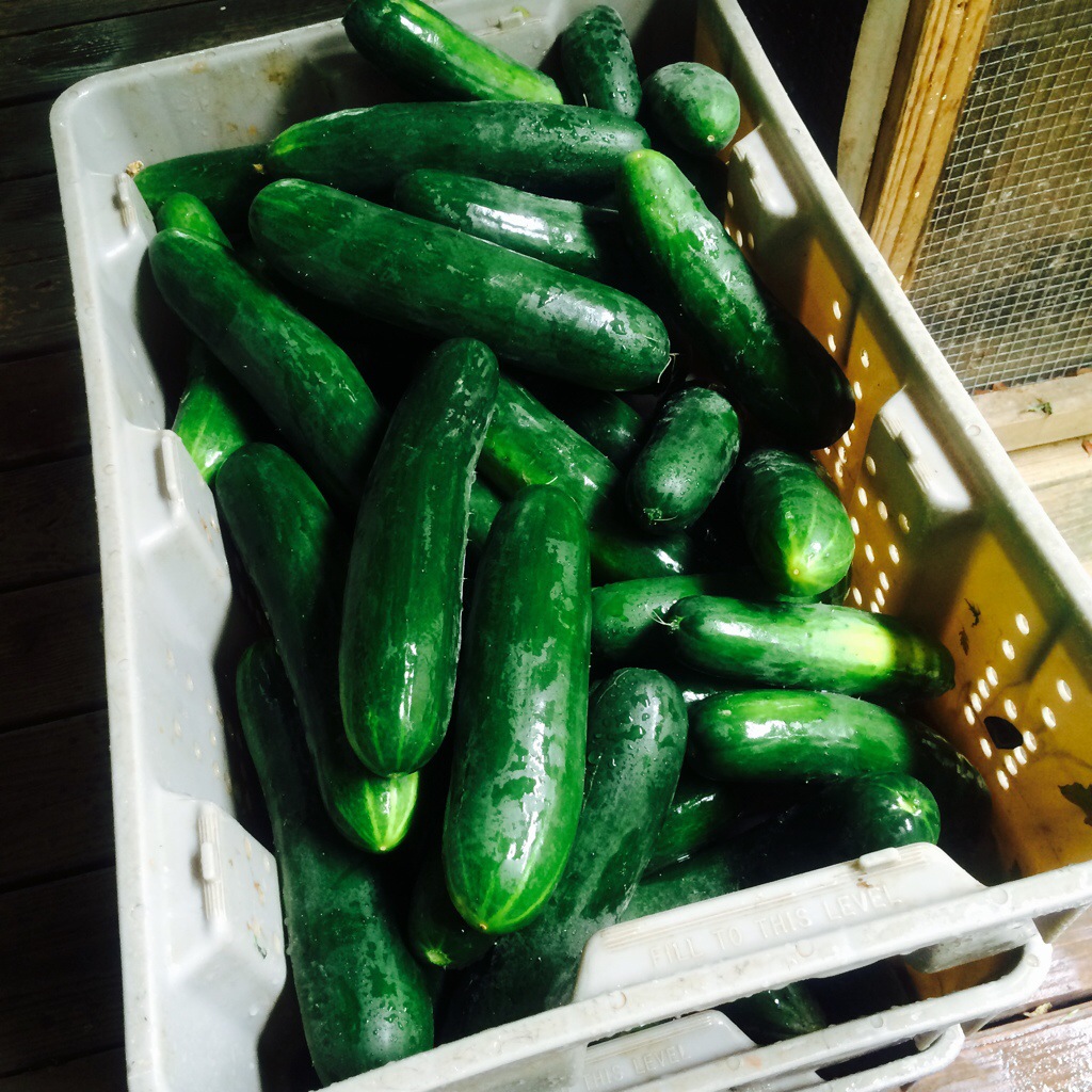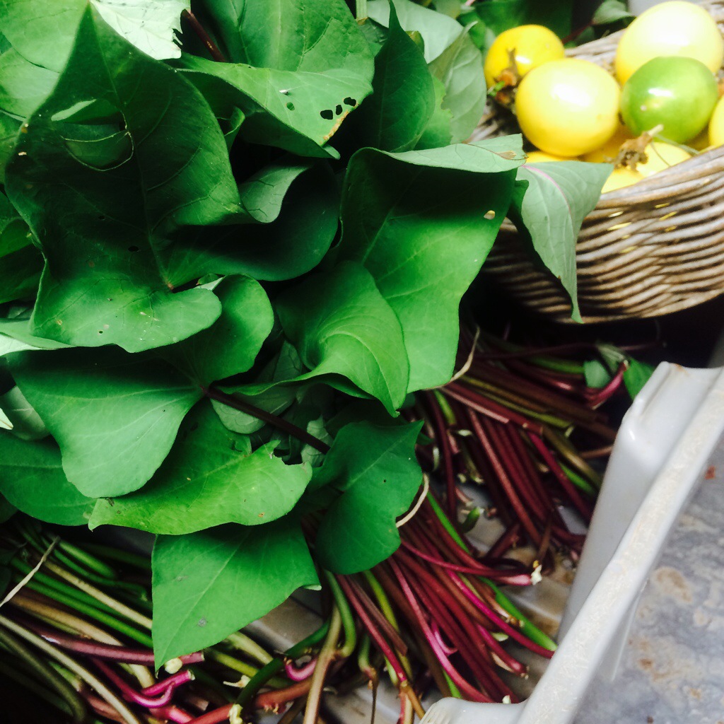 We are still growing food, people! Come out and choose something cool and crunchy for dinner tonight! Sweet salad mix, baby spicy salad mix, microgreens, sweet potato greens, kale, collards, beautiful slicing cucumbers, onions, Italian basil, lemon basil, garlic chives, lemongrass, yard-long beans, pineapple, papaya, passionfruit, and farm fresh ARTfarm eggs!