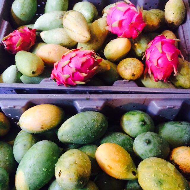 This morning, freshly harvested for you: Small amounts of salad greens including sweet mix, baby arugula, baby spicy, and microgreens; cooking greens, radishes, cucumbers, garlic chives, mint, lemongrass, recao, Italian basil, passionfruit, and a few ARTfarm dragonfruit! For the farmer in you, we also have pineapple slips, native trees, and a few vegetables starts.