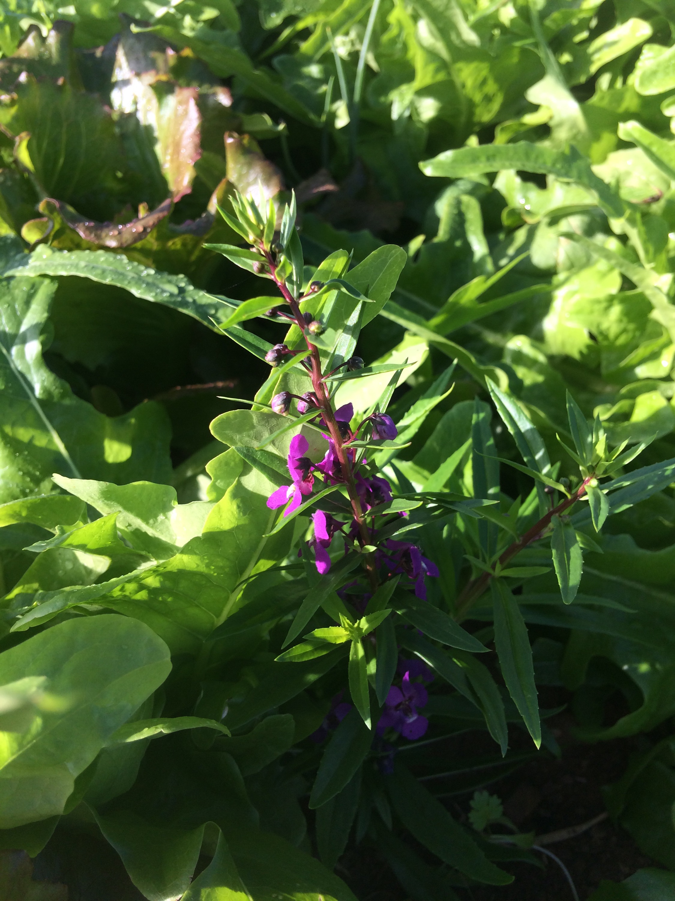 Wildflowers specifically chosen to attract beneficial insects bloom in the lettuce and onions. Sweet salad mix, teen spicy salad mix, baby and teen arugula, lettuce heads;