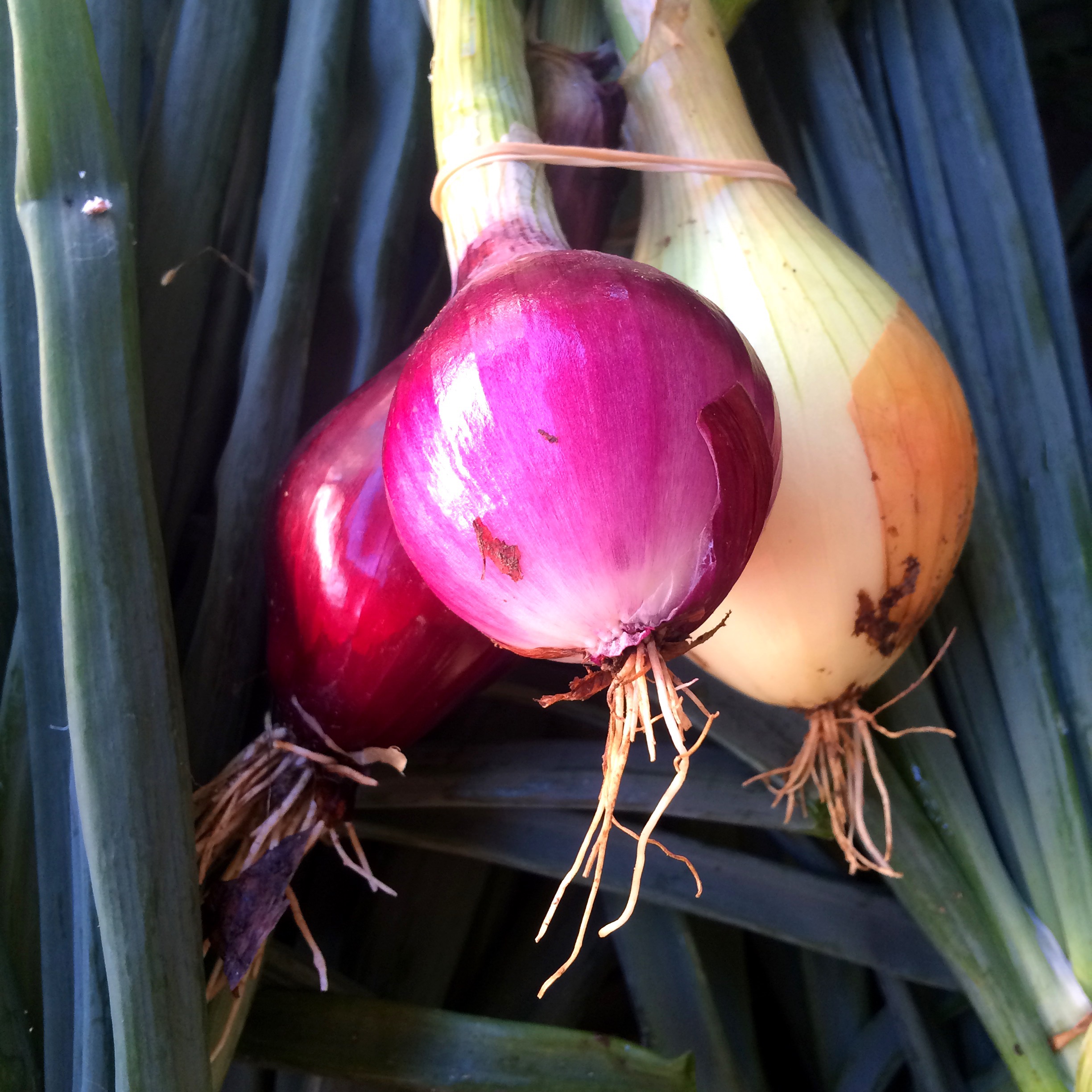 Gorgeous red and white onions with full green tops! Freshly harvested this morning for you.We’ve got a fresh batch of Fiddlewood Farm goat cheese for early birds again today! Beautiful fresh goat cheese medallions, locally made, creamy and sweet! We made a beautiful pizza for dinner last night featuring Bethany’s awesome goat cheese, ARTfarm basil, kale, peppers and onions… Yum! If you don’t feel like baking your own pizza, check out the new Italian restaurant (at Five Corners next to Car Zone), Un Amore, from Frank and Katherine Pugliese. They are buying ARTfarm produce for their kitchen as well as featuring Fiddlewood farms goat cheese in their signature ravioli dish.