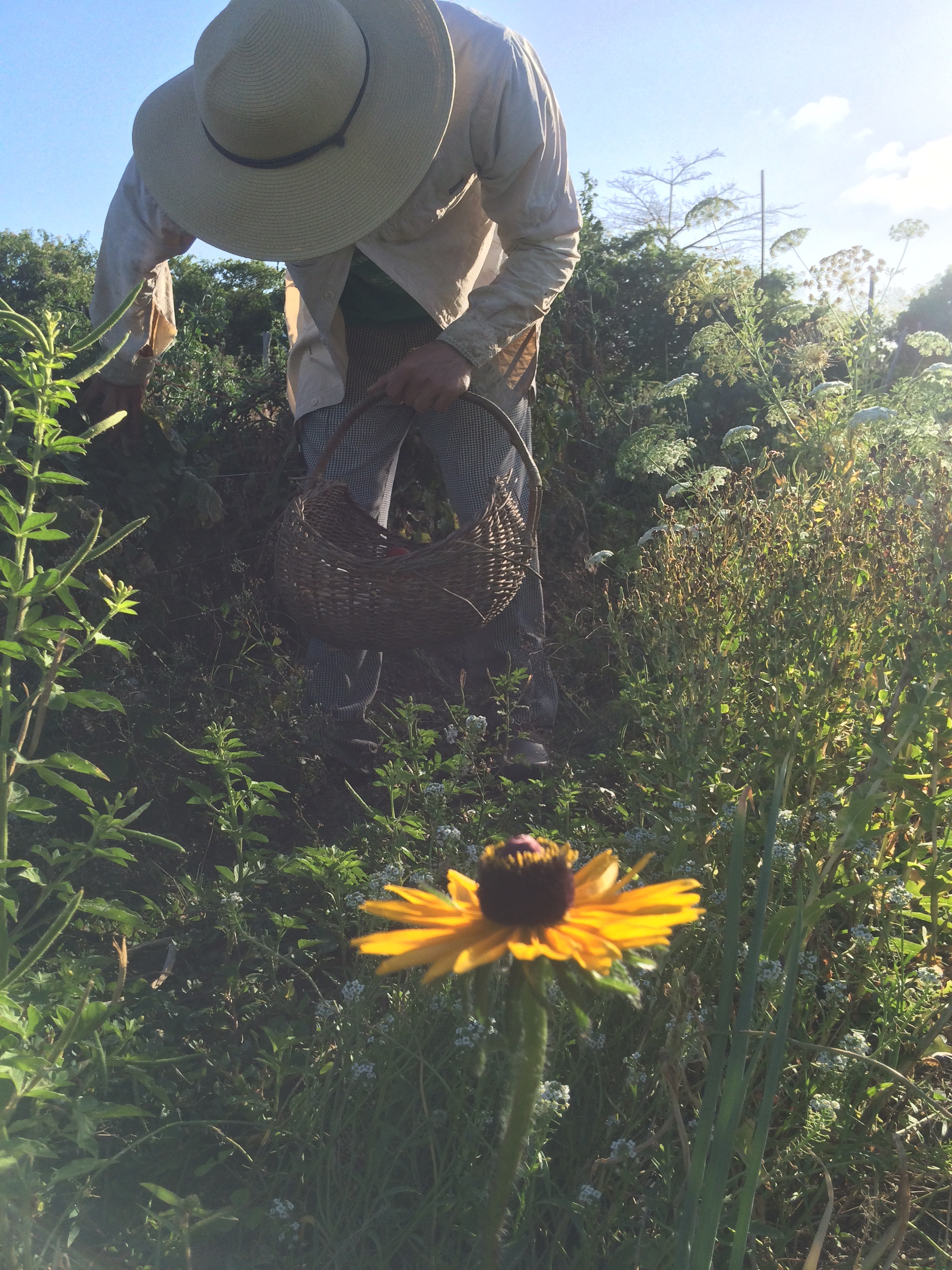 Sweet salad mix, arugula, spicy salad mix, lettuce heads, green bell peppers, two hot peppers and the yellow mild-but-pungent pepper, all the basils, recao, onions, all the tomatoes, zinnia flowers and sunflowers, parsley, garlic chives, rosemary, a few bunches of cooking greens, papaya and passionfruit. And from our partners we have I-Sha’s vegan ice cream! Goat cheese will be back next week.