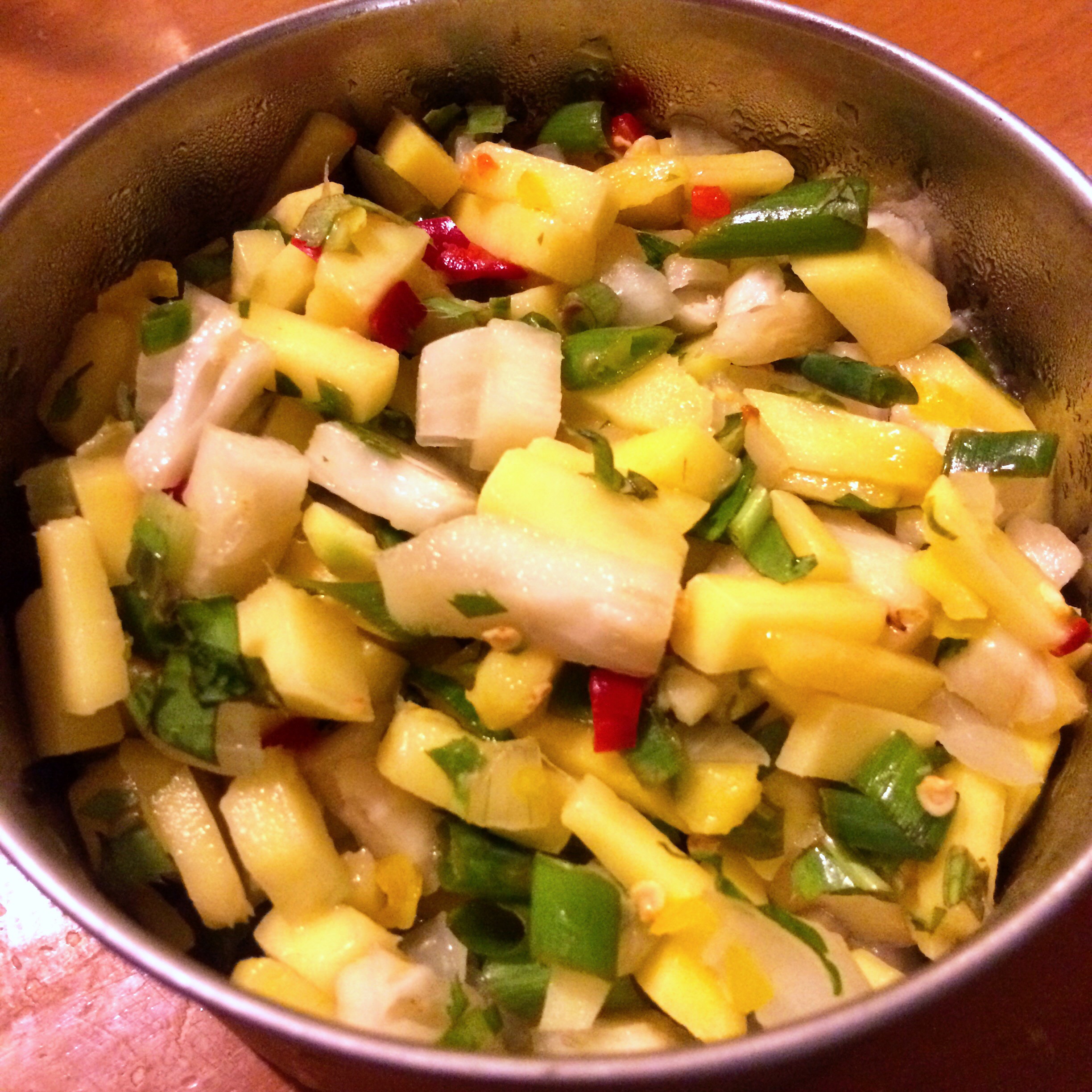 One slightly unripe nam doc mai mango, peeled, pitted and chopped