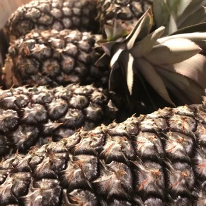 Sweet salad mix, baby arugula, baby spicy salad greens, loads of pineapple, loads of papaya, a few slicer tomatoes, a good bit of cherry tomatoes, a little bit of cucumbers, lots of beets, beautiful onions, radishes, cooking greens, dandelion greens, Italian basil, dill, parsley, cilantro, green coriander and fennel seed, recao, lemongrass, ginger root, turmeric, bell peppers, seasoning peppers, serrano peppers, chili peppers, watermelon, passionfruit, assorted pumpkins and miniature butternuts, and of course our beautiful sweet potatoes, big and small, and cut flowers. And Dr. Bradford is back! Hooray, lots of fresh creamy beautiful Fiddlewood Farm goat cheese from her alpine dairy goats up in the rainforest.