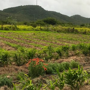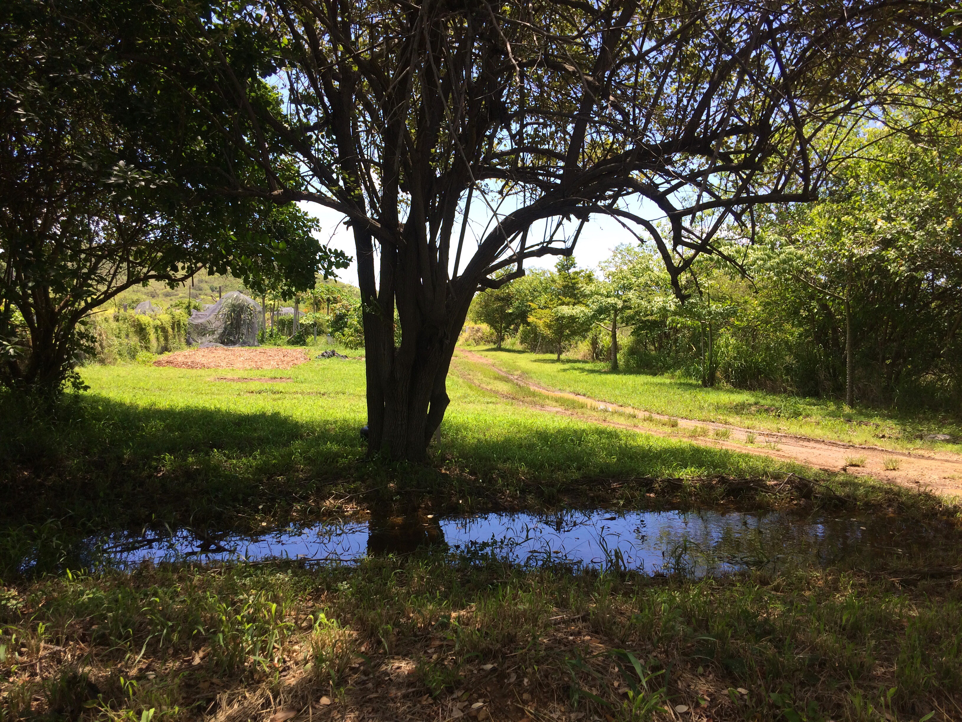 The ginger and turmeric were recently mulched and then enjoyed lots of rain. The plants are loving it! They should be ready for harvest in a few months.Farmer Luca Q&A… Q: How do you know which dragonfruit type is which? A: “I just know. From the shape.” So mystical!Standing water in the guts after a big rain keep native fruit trees like this JoJo plum happy.How about that big thunder and rain! On the farm, lots of mushrooms popping up everywhere and the grass is exploding with growth. The ginger and turmeric crops, ready in a few months, are looking beautiful. We were able to mulch them right before Sunday’s storm came.