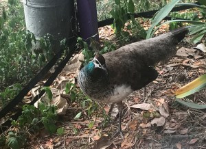 And a very friendly peahen we christened “Ophelia” showed up one day, and adopted us and our new baby chicks as her own.