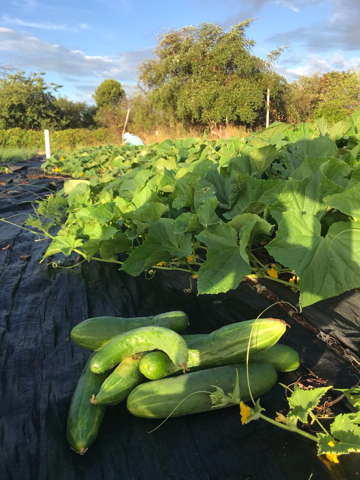 Sweet salad mix, teen arugula, teen spicy salad mix, lots of cucumbers three types, assorted chili peppers, cherry tomatoes, turmeric, red noodle long beans, hopefully a few bags of watermelon, lots of baby bok choy with green and white stems, a few bags of figs, dandelion greens, kale, a few bunches of cilantro, Italian basil, Thai basil, lemon basil, holy basil, mint, lemongrass, beautiful pink radishes, butternut squash, and zinnia flowers. lots of native trees, plus fig trees!