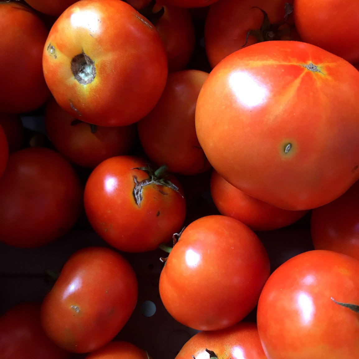 Think canning, think sauces, bringing a fresh salsa to your next party, pico de gallo, making your own ketchup, bloody Marys, pizza Margherita, BLTs, grilled cheese with fresh tomato slices… tomato wedges in a balsamic  vinaigrette with anchovies, caprese salad with goat chèvre instead of mozzarella, roasted, stuffed tomatoes, tomato dump cake, tomato at the beach eaten like a mango out of hand and then washing the juice off with a swim.