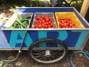 - Bring your own bags or box to put your produce into. We’ll place your items on the sanitized table, some things will be pre-bagged, you’ll pack your own bags or box for the rest. Wait to bag until we do a final count of your items to make sure we don’t forget anything.
