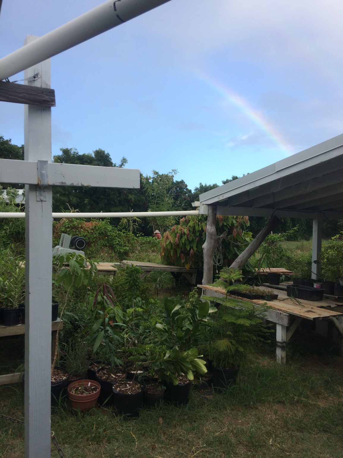 Grown here at ARTfarm in the old cattle pastures, now gardens: Haitian kidney and Julie mangoes, dragonfruit, a few pineapples, loads of beautiful papaya, passionfruit, lots of sweet potato, Italian basil, garlic chives, recao, rosemary, lemongrass, sweet potato greens, and seasoning peppers!