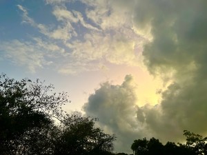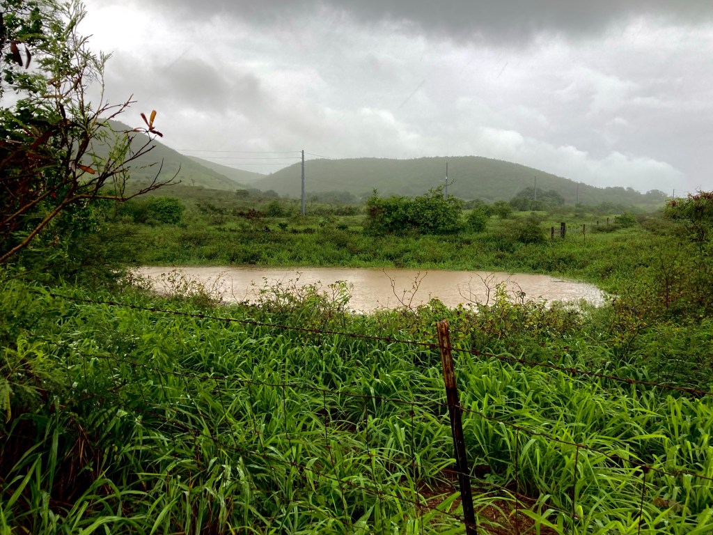 Big clouds keep passing overhead but not leaving much precipitation at ARTfarm on the south shore of St. Croix.