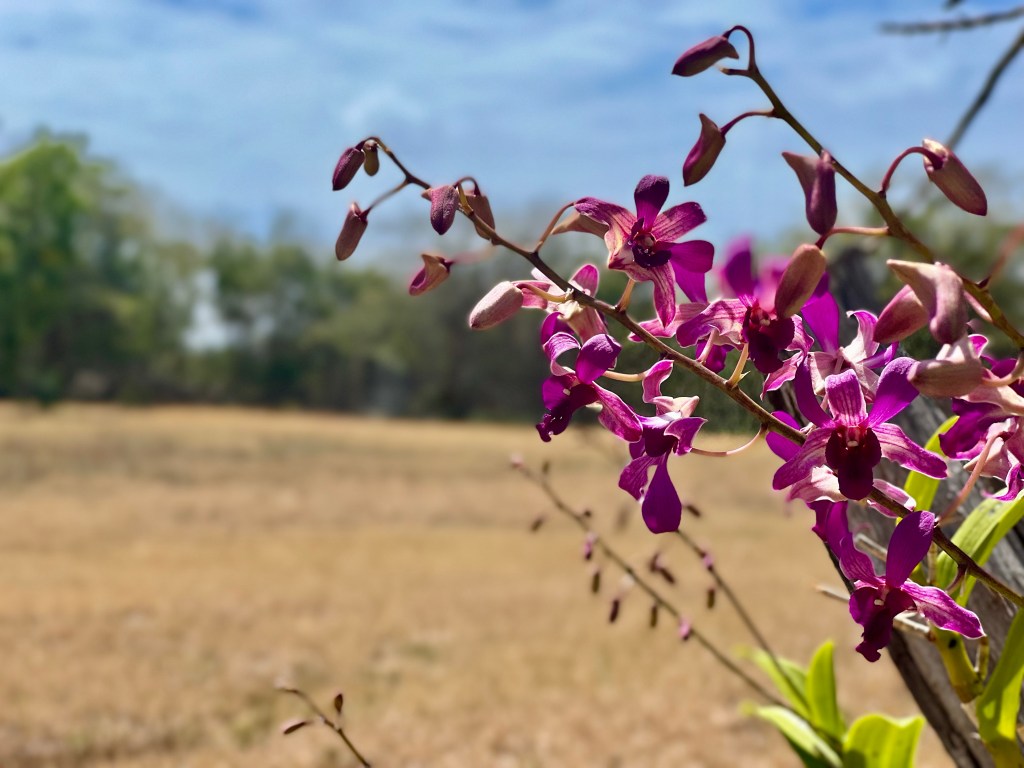 Dry season on the South Shore of St. Croix, USVI. Orchids are one of the few decorative flowering plants that can survive the drought without regular watering.