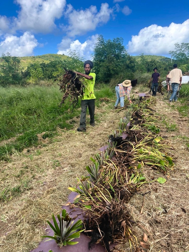 Big thanks to the AmeriCorps group for their help prepping and planting pineapples! From their website: “The White River Natural Resources Conservation District in Vermont, the Virgin Islands Women in Agriculture Association (VIWIAA), and the Bennington County Natural Resources Conservation District have spent the past three years building “Farm Force,” a professional workforce development certification program that bridges Vermont and the US Virgin Islands. This year, we proudly partnered with the Working Lands Conservation Corps (WLCC), a new AmeriCorps initiative sponsored by the USDA-NRCS and the National Association of Conservation Districts (NACD), to train 30 young adults in Conservation Planning and Regenerative Agriculture over the course of one year.”