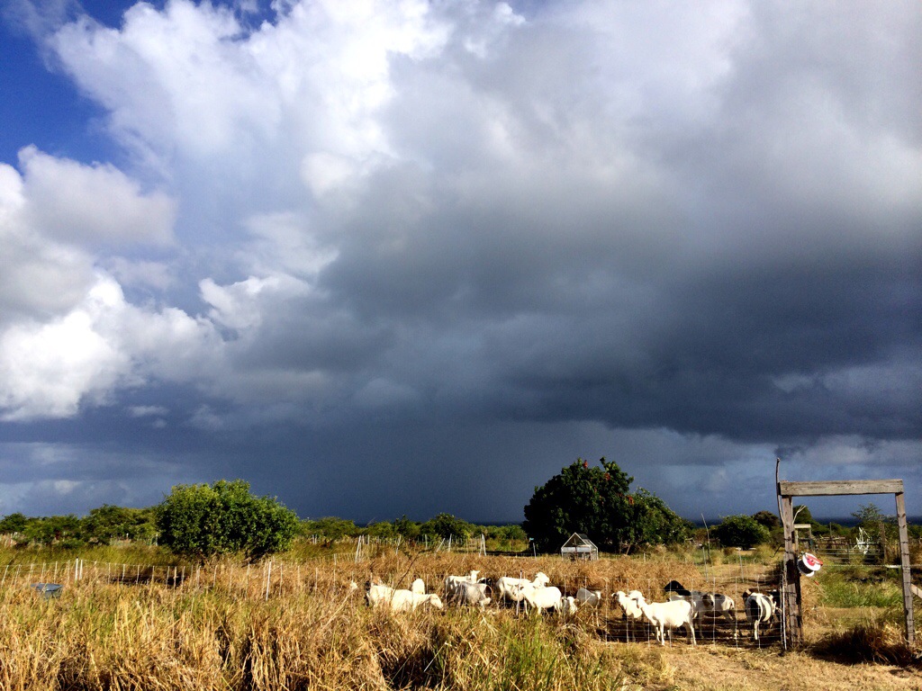 Good news/bad news time, dear readers: Due perhaps to the extremely dry conditions we’ve had over this spring and summer, the Nam doc Mai, Julie and Malika mangoes are ending early. The harvest is finished, but the trees are flowering now, which means that they should have fruit again in a few months. So there will be a strange off-season of mangoes in fall/winter if all goes well and the trees hang onto their fruit through the storm season. We still have several more weeks of cucumbers in the gardens, some dragonfruits ripening on the vines, and we will do our best to continue some lettuce production despite the super dry conditions for a few more weeks. Everybody, please do a rain dance out there and let’s get some precipitation on St. Croix!