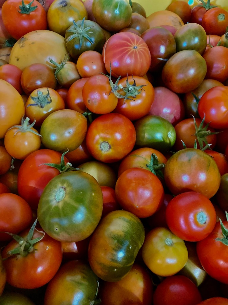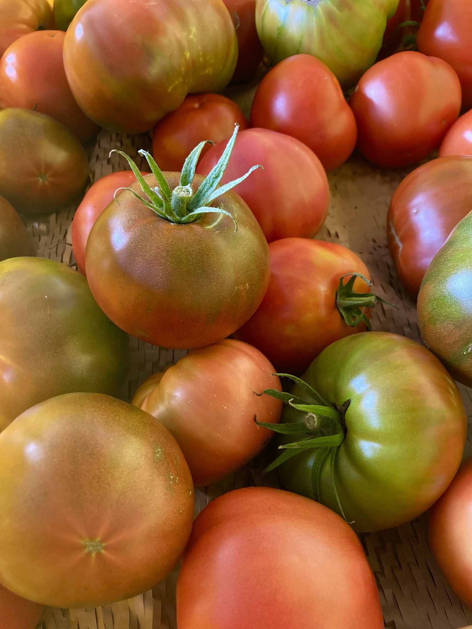 The farmstand will be first come first served Wednesday, 5-6pm. Tomatoes, salad greens, veggies, herbs. Full list below. No reservations. We recommend coming about halfway or later through the hour if you would like a shorter line. We really appreciate your support. We’re gonna stop doing Saturdays for a bit here. Thank you.
