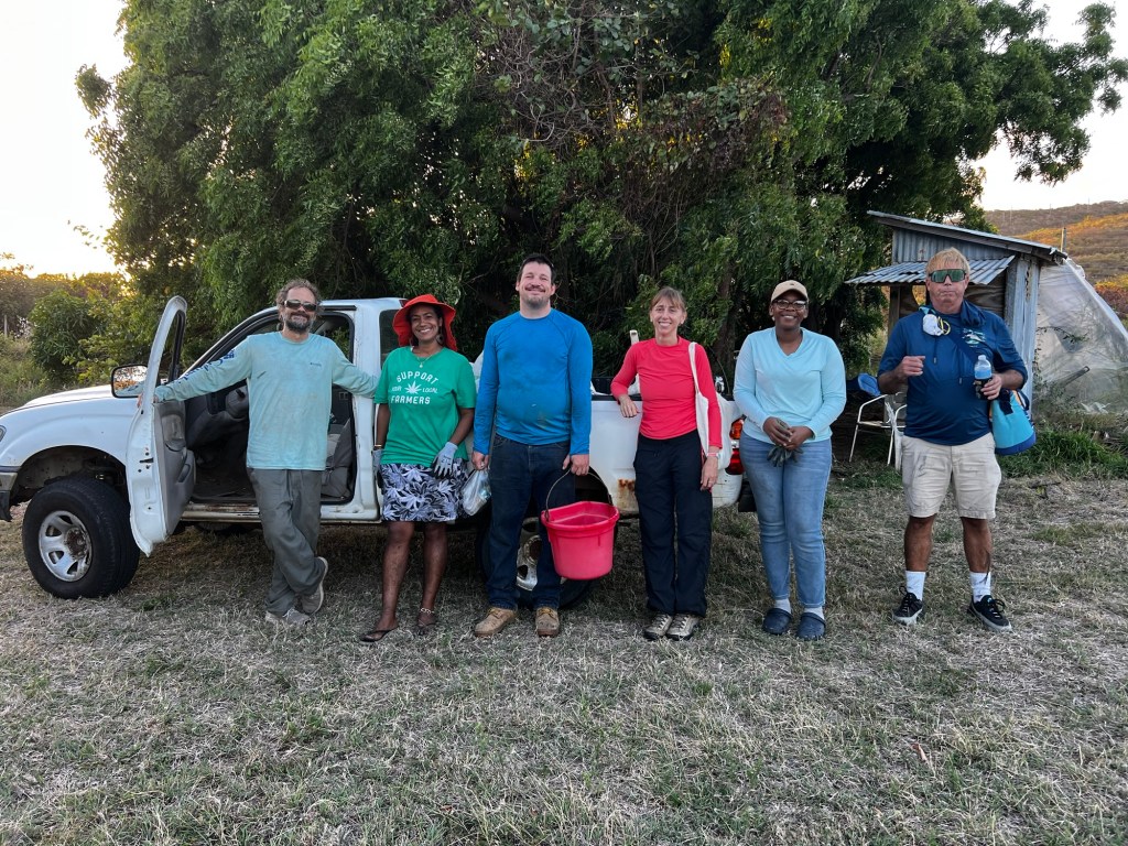 Superhero ARTfarm volunteers heading out at sunset after an afternoon helping