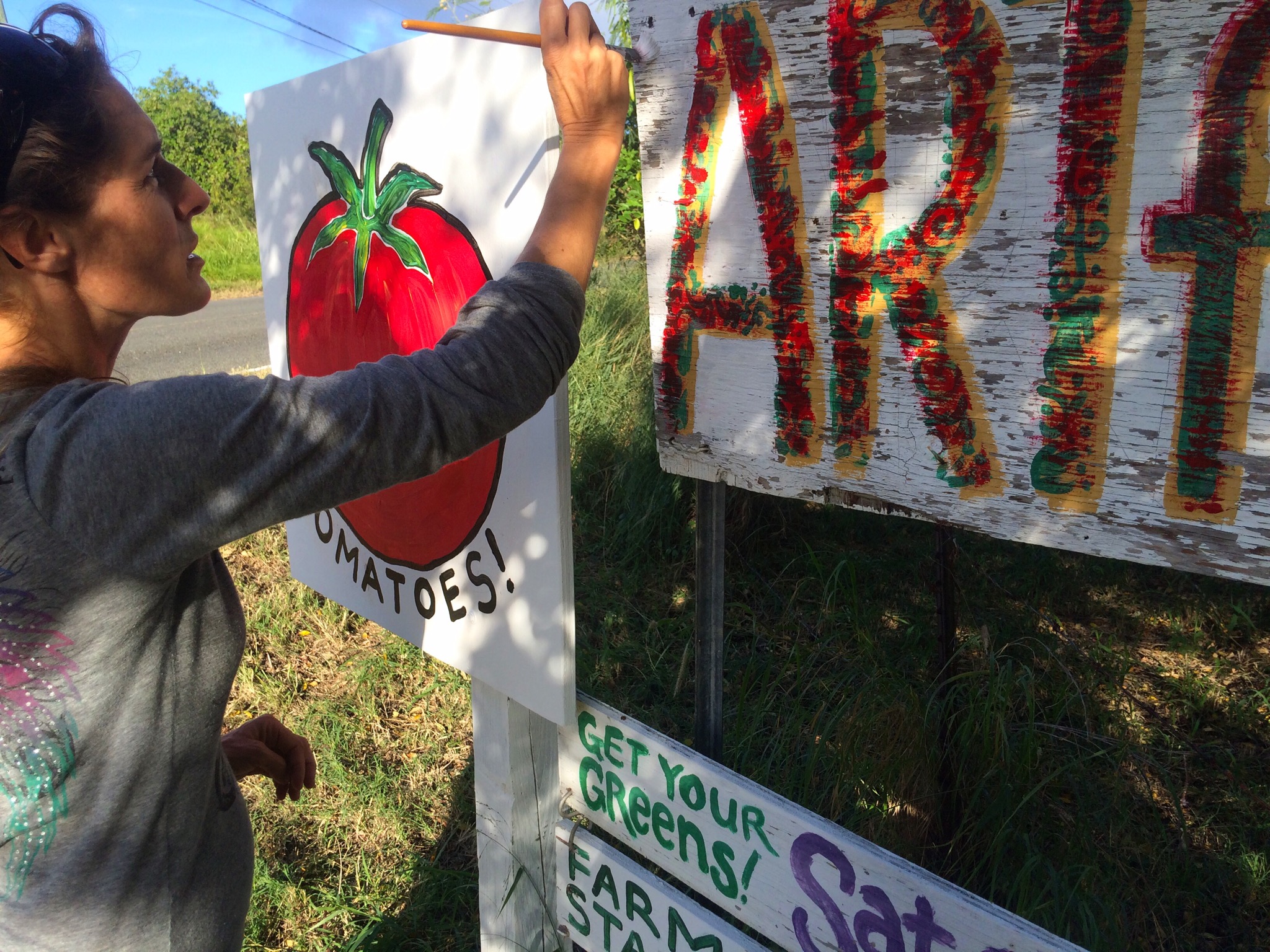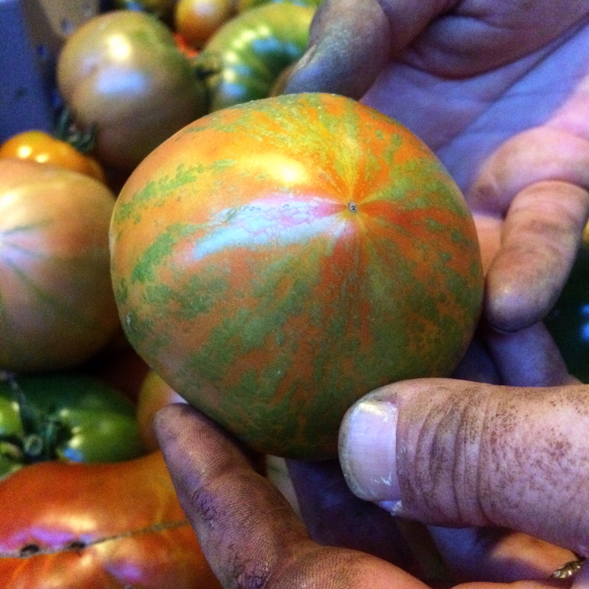 Jen’s fingers are coated in the magic green fairy dust of tomato plants after a long afternoon picking.