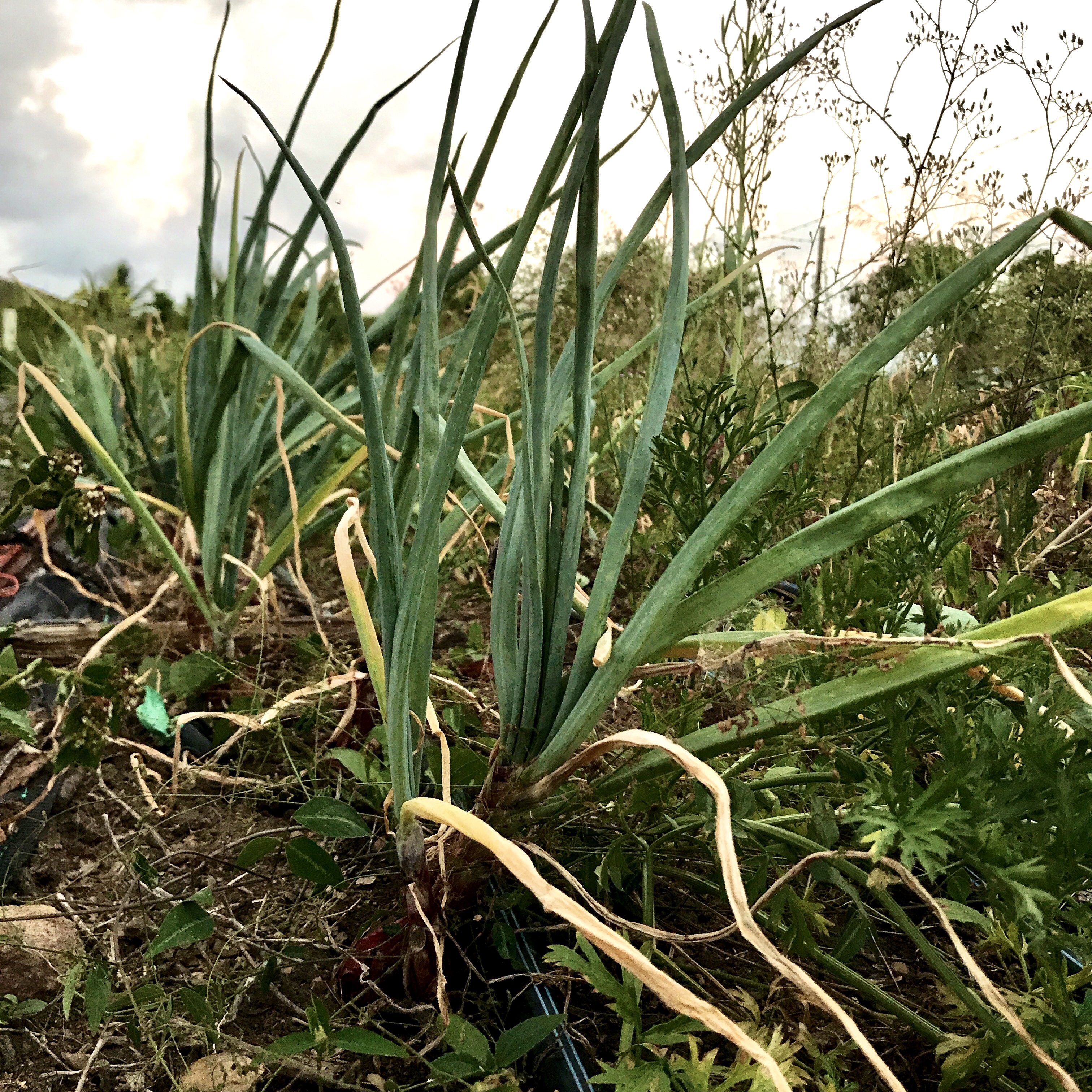 Everything gets more pungent in flavor at the end of the season … onions full of weeds!